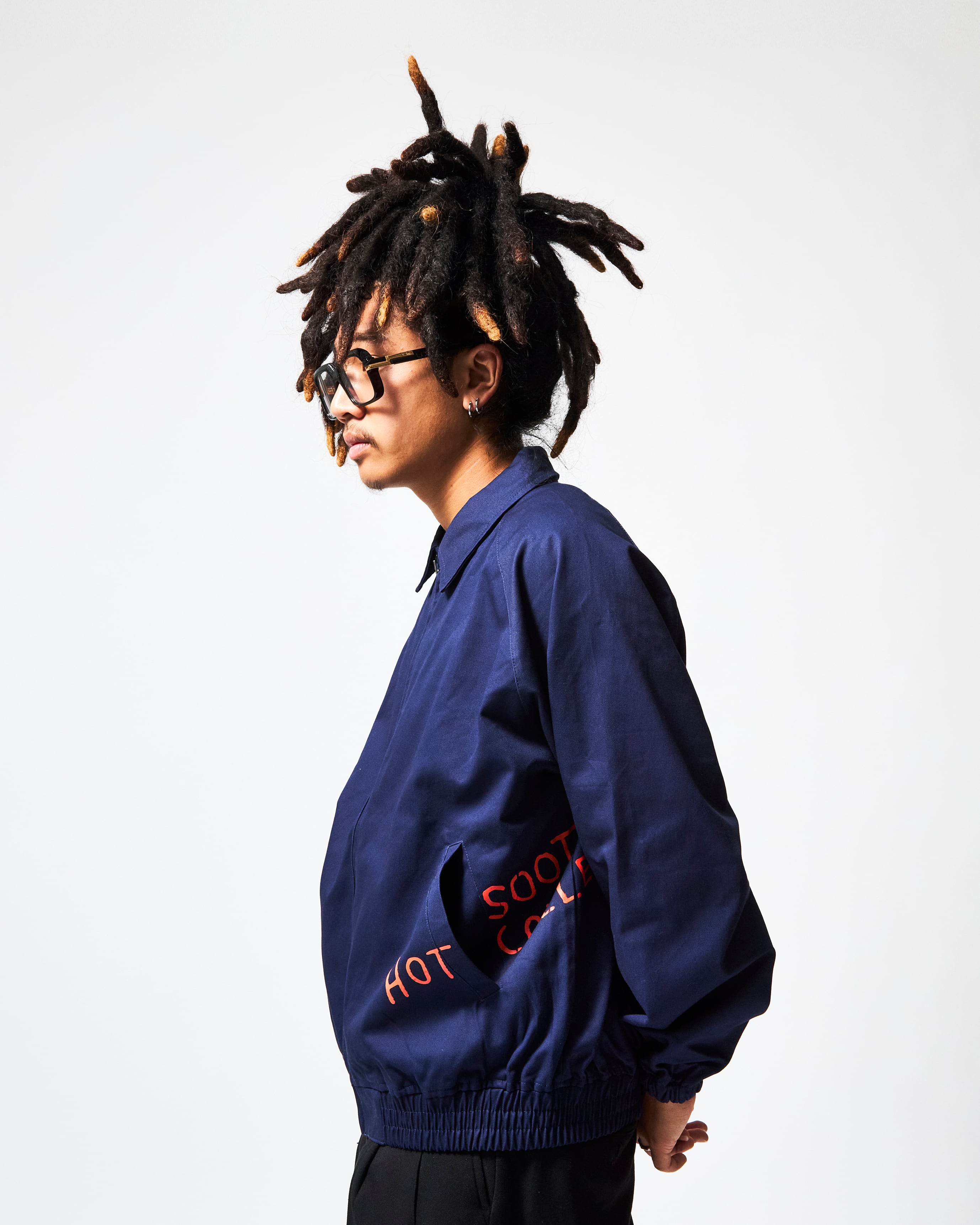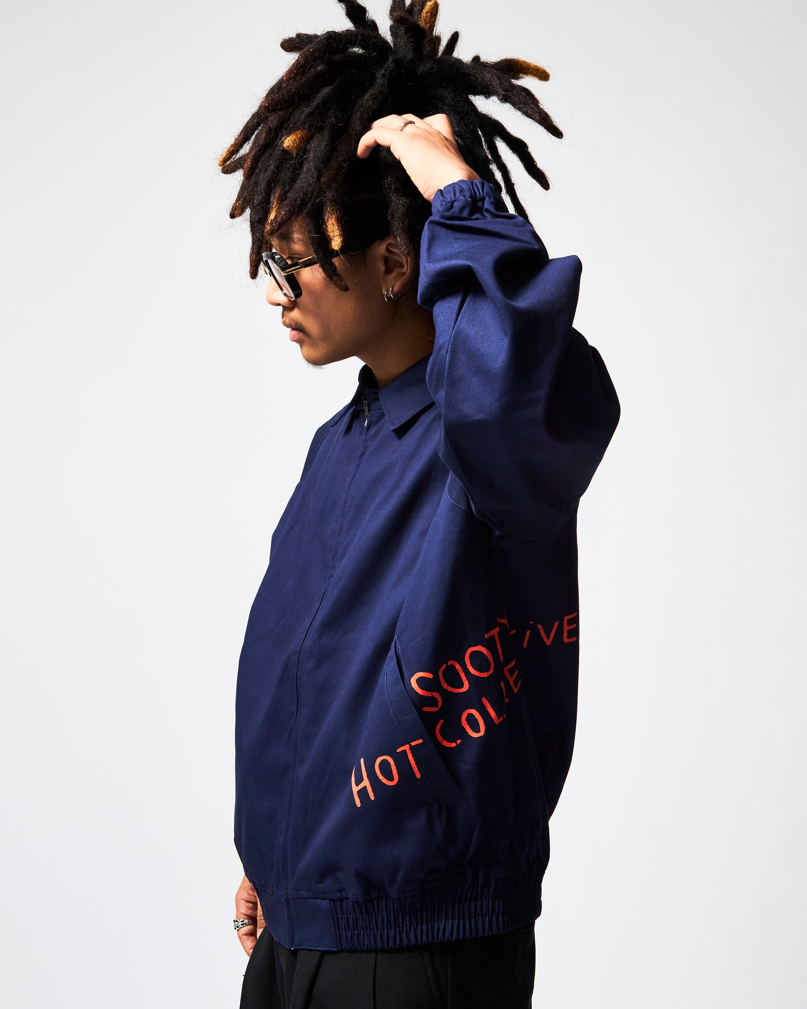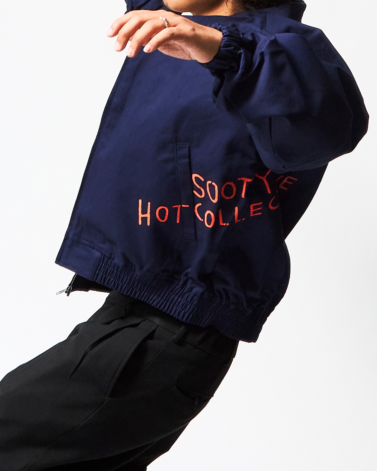 本作では、あえて“定位置”をつくらず、プロダクトごとにわずかに異なる位置へプリントを施しました。